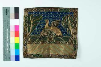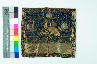 Descriptioninsignia for a 8th degree civil official - quail; the bird is embroidered on a separate piece of material so that it could be changed if the official changed rank; mostly couched thread embroidery; the background scene on a) includes 2 trees while on b) it includes a pomegranate? & Buddha hand? symbolStatus