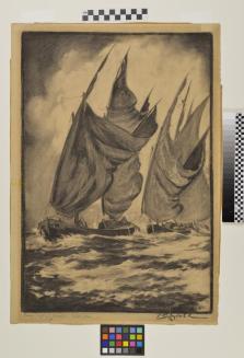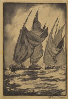 DescriptionShips with sails in a stormy sea.Status