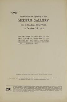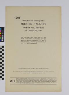 DescriptionAnnouncement of the opening of the Modern Gallery; October 7th,1915.Status