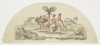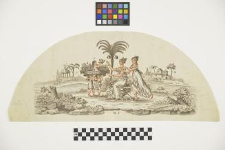 Descriptiontwo female figures, greek/roman ? with three cherubs in landscape settingStatus