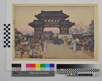 DescriptionJapanese gate in background. People with their booths set up to sell their goods.Status