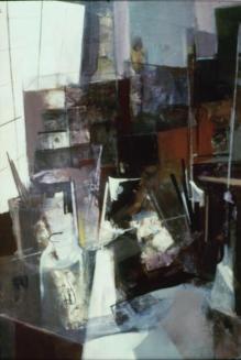DescriptionSlightly Cubist rendering of a studio area with artist tools and furnitureStatus