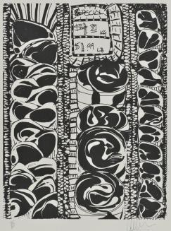 Descriptionblack and white display of butchered meatStatus