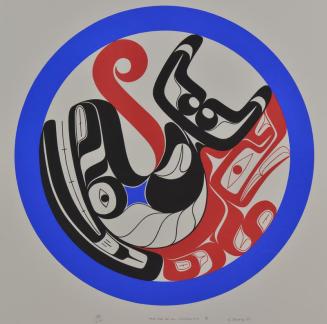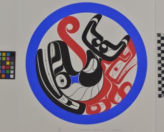 Descriptionprint illustrates the transformation of a supernatural white wolf into a killer whale; the legend explains why killer whales are half black and travel in groups as do wolves; the red tail of the wolf is also the water spout of the whaleStatus