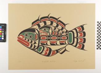 Descriptiondepiction of the halibut - see comments; inspired partly by an old design of the late Mungo MartinStatus