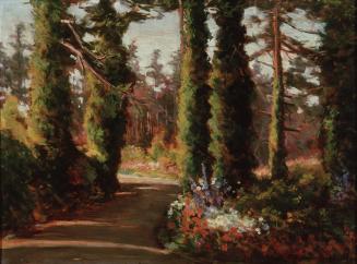 Descriptionpainting depicts a driveway lined with trees & belonged to the Groos, a prominent Victoria familyflowers; the mansionStatus