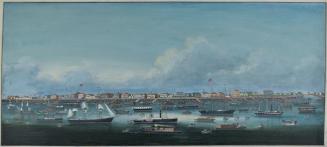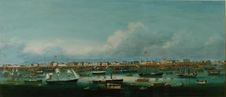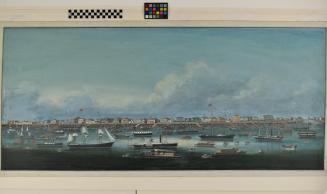Descriptionscene of the Bund at Shanghai, with boats anchored in the foreground and with waterfront scene with buildingsStatus
