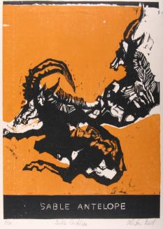 Descriptiontwo sable antelopes suspended in mid-air; below the two images is printed "SABLE ANTELOPE" against a black backgroundStatus
