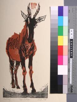 Descriptionone standing Topi antelope viewed from the frontStatus