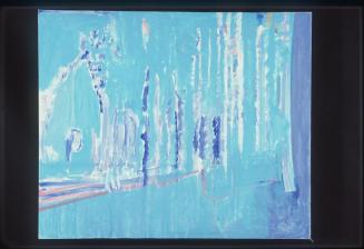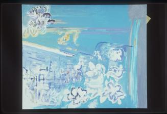 Descriptiontriptych; left (C) blue kimono with white flowers, gate appearance; (A)- blue kimono outlined in pink; ocean; (B)- aqua kimonos; gate like appearance - large blueStatus