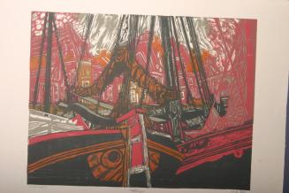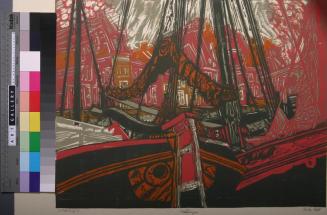 Descriptionforeground with many foreshortened boats, port in background with red buildingsStatus