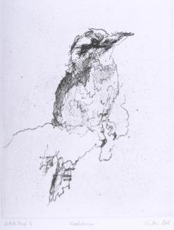Mediumsoft-ground etching on blue paper