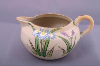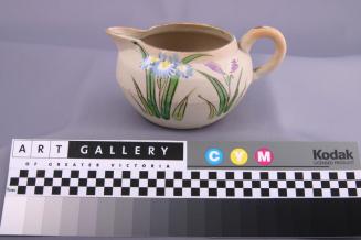Descriptionenameled irises and "souvenir of Calgary" in gold paint on grey ceramicStatus