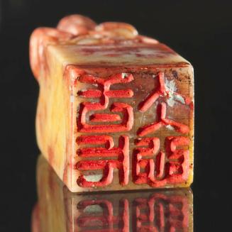 DescriptionRectangular seal has a carved figure at top and carved Chinese characters on the underside.Status