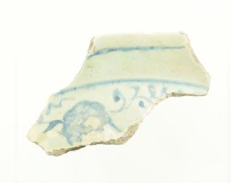Descriptionblue & white glazed earthenware shard; part of rim intactStatus
