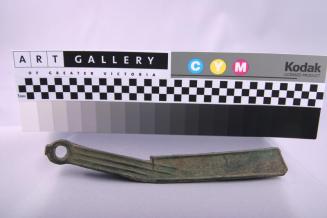 DescriptionPerforated on one end with raised parallel ridges on 2 sides of handle; raised pattern (characters?) on 2 sides of blade.Status
