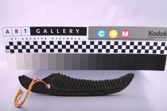 DescriptionCoin is flat, elongated and comb shaped with a handle at one end and a circular perforation at base of handle. Raised ridges on one surface indicate the teeth of the comb and decorative motif on handle. String through holeStatus