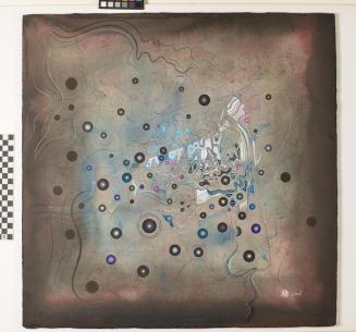 Descriptionseries of spheres and brush strokes in dark browns, purples, blues, teal and pastelsStatus