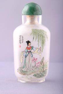 Glass Snuff Bottle with Inside Painted Images of Maidens