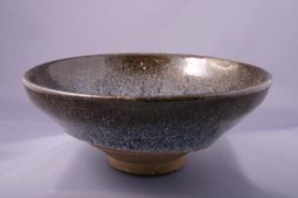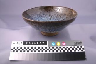 DescriptionConical shaped bowl with small footed base has a thick streaked bluish glaze.Colour: bluish