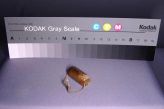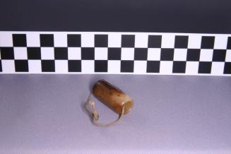 Descriptioncylinder shaped tubular bead with conical perforation. There is a cord or string through the perforation.Status