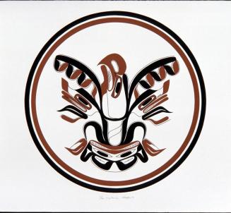 DescriptionTwo concentric circles enclose a group of motifs in brown and black.Colour: black;brown