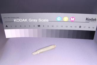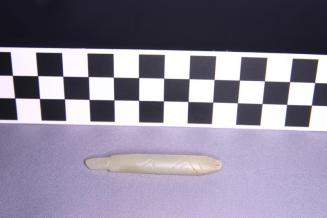 DescriptionFish shaped engraver has a perforation through the mouth and a double bevelled distal end. Incised lines indicate the scales, eye and gills.Status