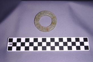 DescriptionFlat ring-disc with surface decoration of comma shapes (silkworm pattern) and a slight raised border at outer and inner edge.Status