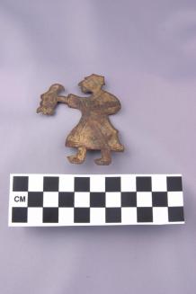 DescriptionPlaque is incised and gilded on one surface, depicting a male falconer wearing a truncated cone shaped hat with an outstretched arm holding a falcon. One of a pairStatus