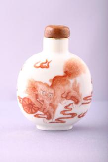 Porcelain Snuff Bottle with Fo Lion Dog Design