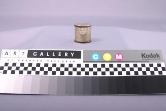 DescriptionLenticular shaped silver box with deeply fitted lid. There is a ridge or band of copper at the top edge of the lid and at the base edge.Status
