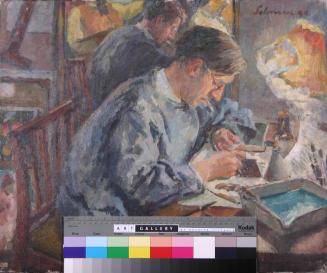 Descriptionportrait of Paul Drury working at a table with a mirror behindStatus