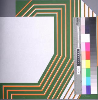 Descriptiongeometric hard edge composition cut diagonaly across trc and a square cut out on tlc.Colour: silver;blue;yellow