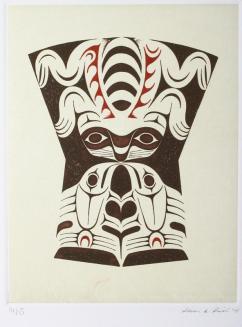 DescriptionFirst Natiions motifs within a 'copper' shape in two tones of brown ink.Colour: brown