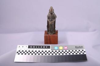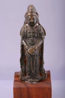 Descriptionstanding Bodhisattva with elaborate jewelled ornaments extending onto chest & down sides to its feet; holding a rosary (mala) in hands clasped at waistStatus