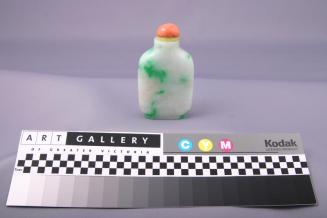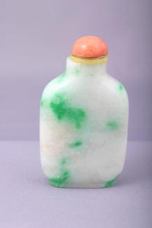 Snuff Bottle of White Jadeite Mottled with Green