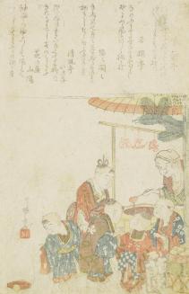 Surimono of Candy Shop and Children at New Years