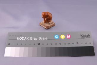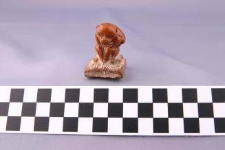 DescriptionSmall seated monkey figure glazed in orangey-brown on a square unglazed base. There are perforations on the back and the base.Status