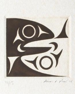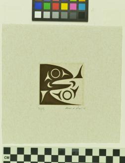 DescriptionFish or whale motif in brown ink on buff coloured paper.Colour: brown; buff