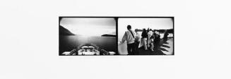 DescriptionExhibition component consisting of a black and white double frame image of the bow of a ferry and passengers.Colour: black; white