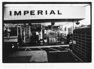 DescriptionExhibition component consisting of one single frame and one double frame black and white image of a gas station and market. Photos are matted and framed together.