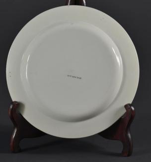 Descriptioncircular white plate has a plain flat raised rim in yellow with a thin black ring on either side; black transfer print illustration in the well depicts a landscape scene in Sicily with a temple in the background;