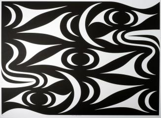 DescriptionDesign is a contemporary rendition of an old Coast Salish carved comb depicting a double headed serpent.Colour: black; white