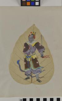 DescriptionChinese export painting; image depicts a standing demon-like male figure with a snake;Status