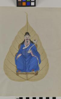 DescriptionChinese export painting; image depicts a seated male figure in a blue robe holding a sceptre in his left hand properStatus