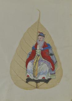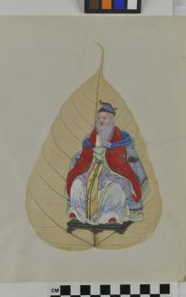 DescriptionChinese export painting; image depicts seated male figure with a long grey beard, wearing a multi-coloured robeStatus