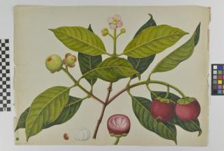DescriptionChinese export painting; multicolour, painting of branches of mangosteen with fruit, flowers, seeds and leaves;Status