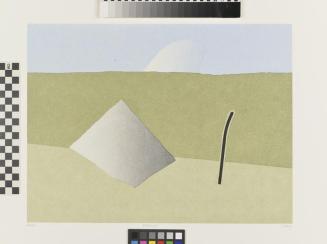 DescriptionLandscape with vertical black line right sideColour: black; pale blue; grey; olive green; pale olive green