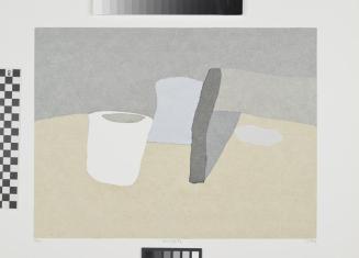 DescriptionStill life with white vaseColour: dark grey; ochre; pale blue; grey; pale grey; blue grey; pale blue grey