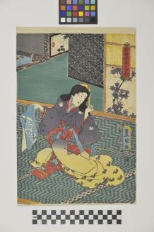 DescriptionLady sitting on a Tatami mat and adjusting her hair ornament in the play, "Tsuyufukumu Tsumado no Shirohagi"Status